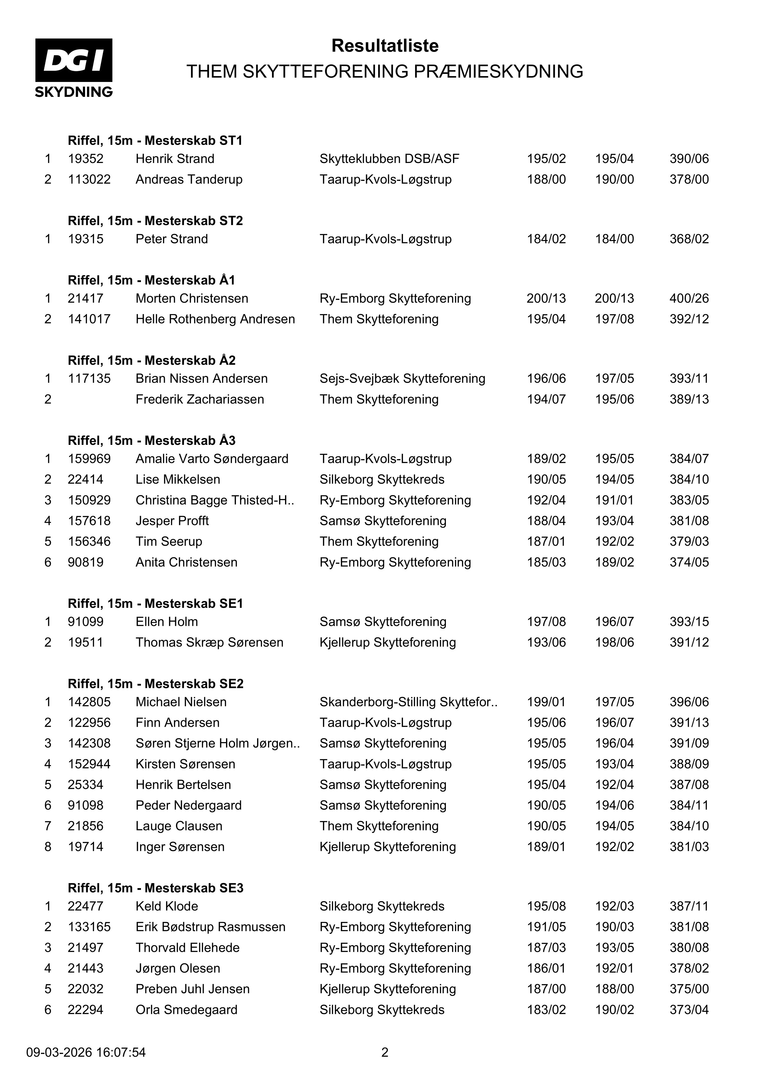 Resultatlisten for Them Skytteforenings præmieskydning 2026 kan ses eller downloades som PDF her, eller gennemses nedenfor.